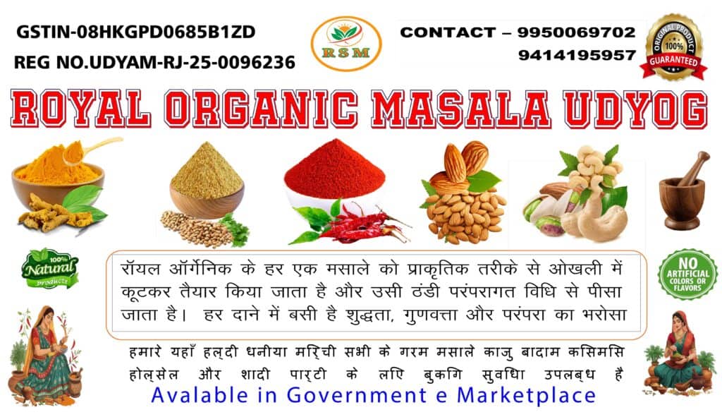 Royal Organic Masala – 100% शुद्ध और ऑर्गेनिक मसाले AllSpecies ( मसाले )SaleFeaturedSpecies ( मसाले )Organic Turmeric Powder 1kg | ऑर्गेनिक हल्दी – Royal Organic☆☆☆☆☆₹360 Original price was: ₹360.₹320Current price is: ₹320.Add to CartSaleFeaturedSpecies ( मसाले )Mathaniya Red Chilli 1Kg | मथानिया मिर्च – Royal Organic☆☆☆☆☆₹380 Original price was: ₹380.₹340Current price is: ₹340.Add to CartSaleFeaturedSpecies ( मसाले )Organic Coriander Powder 1Kg | धनिया पाउडर – Royal Organic☆☆☆☆☆₹320 Original price was: ₹320.₹280Current price is: ₹280.Add to CartSaleFeaturedSpecies ( मसाले )Organic Coriander Powder 500g | धनिया पाउडर – Royal Organic☆☆☆☆☆₹160 Original price was: ₹160.₹140Current price is: ₹140.Add to CartSaleFeaturedSpecies ( मसाले )Mathaniya Red Chilli 500g | मथानिया मिर्च – Royal Organic☆☆☆☆☆₹190 Original price was: ₹190.₹170Current price is: ₹170.Add to CartSaleFeaturedSpecies ( मसाले )Organic Turmeric Powder 500g | ऑर्गेनिक हल्दी – Royal Organic☆☆☆☆☆₹180 Original price was: ₹180.₹160Current price is: ₹160.Add to Cart नेचुरल हल्दी